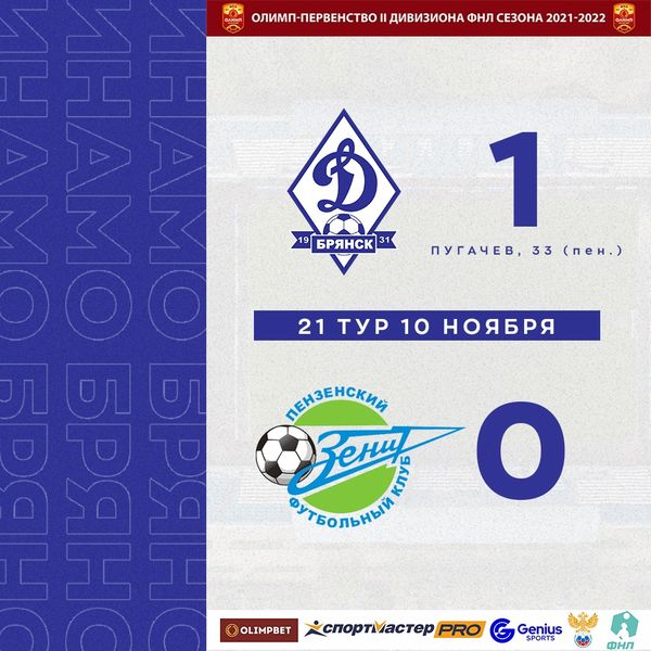 Брянская команда уходит на зимний перерыв с 41 очком в активе. Итоговое расположение команд в двух подгруппах Группы 3 станет известно 14 ноября, когда клубы сыграют заключительный в этом году тур. Ближайший официальный матч сине-белых состоится 2 апреля.