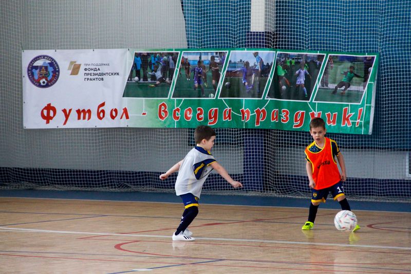 Дети были счастливы что игнрают в футбол: ведут мяч, отбирают его у соперников, пасуют друг другу мяч. Это победа!
