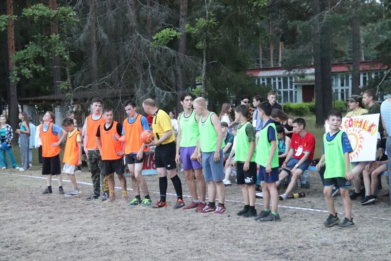 Далее весь лагерь был разделен на несколько групп по ролям: тренера и футбольные команды, врачи, группа поддержки, болельщики, журналисты, всего в мероприятии было задействовано более 100 человек.