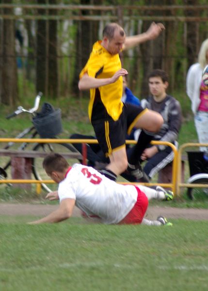 Здорово у хозяев смотрелся Ермаков в середине, и один из эпизодов заслуживает внимания. Получая пас из глубины поля, он одним касанием обыграл висевшего на ногах защитника, ускорился и с ходу пробил из-за пределов штрафной. Жаль, что мяч прошёл чуть выше ворот, его действия вызвали взрыв одобрения на трибунах. До конца тайма терзал оборону гостей Гайдуков, снова его сольный проход завершился выходом на одинокого вратаря "Локтя", но на этот раз Рыжиков не дал себя обыграть и забрал мяч в ногах у форварда. Сыграв здорово в этом моменте, он через несколько минут сделал детскую ошибку, когда свой защитник из центра поля откинул ему мяч, вратарь зачем-то сыграл руками в пределах штрафной. И пришлось ему потеть, отбивая опасно разыгранный свободный удар. В концовке тайма Ларин столкнулся с Бучкой в штрафной, пытаясь добраться до верхового мяча, но вратарь всё же имеет возможность играть руками, поэтому на долю секунды он опередил форварда, и хорошо, что столкновение не имело тяжёлых последствий.