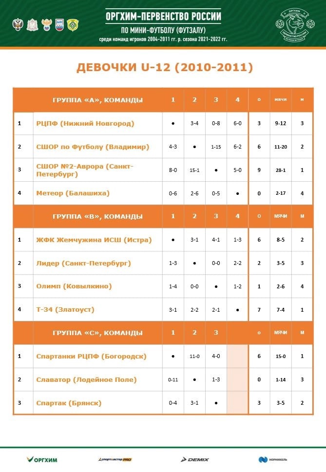 Команда девочек (U-12) брянского "Спартака" под руководством Софьи Савкиной вышла в 1/4 финала Первенства России по мини-футболу, которое в эти дни проходит в Нижегородской области. Вчера брянский коллектив пропускал тур из-за нечетного количества команд в группе и просто наблюдал за "разборками" соперниц. Игра в нашей группе между "Славатором" из Лодейного поля и богородскими "Спартанками" завершилась крупной победой последних - 0-11. Этот результат оставил брянский "Спартак" на итоговом втором месте в группе. В 1/4 финала брянские девочки сыграют с победителями группы "В" - командой "Т-34" из Златоуста. Эта игра состоится сегодня в 12:30.