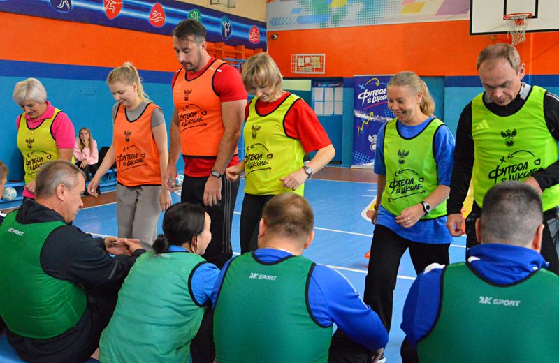 На первой части Самсоновой Ольгой педагогам был представлен отчет о проведенной работе за 2024-2025 учебный год. Также в теоретической части Дмитрий Плотников рассказал об основных вопросах включения модуля "футбол" в программу и основы ведения урока футбола.