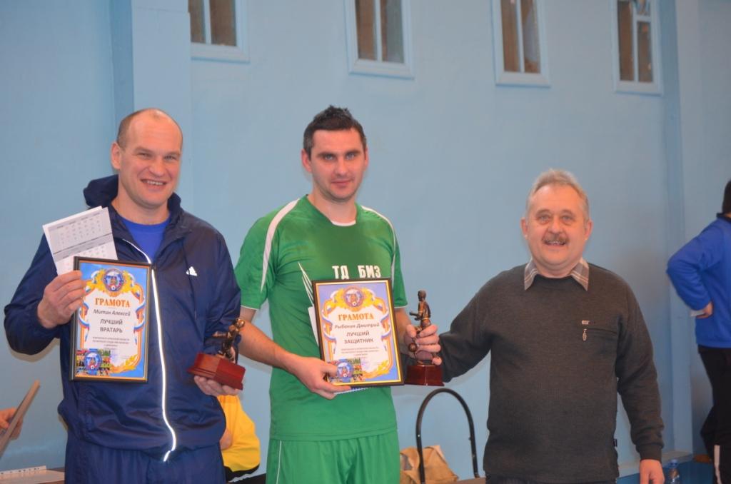В минувшее воскресенье в спортивном зале БГИТА Президент БОФФ Андрей Артемьев вручил заслуженные награды Алексею Митину и Дмитрию Рыбакину. Митин был признан лучшим вратарем Чемпионата области по футболу в сезоне 2014 года, а Рыбакин - лучшим защитником. Игрокам были вручены памятные статуэтки и дипломы.