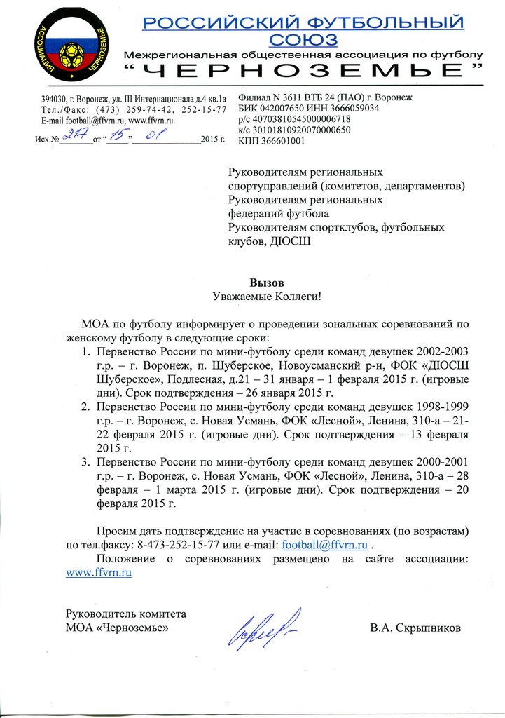 МОА по футболу "Черноземье" приглашает команды девушек для участия в Первенстве России по мини-футболу...