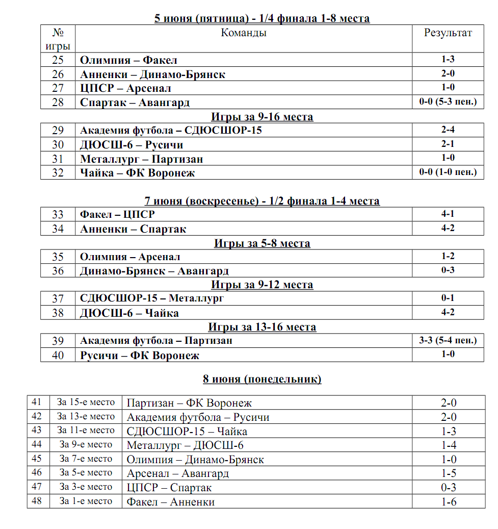 Дальнейшая футбольная история брянских команд на турнире безрадостна. Динамовцы, уступив поочередно курскому "Авангарду" и волгоградской "Олимпии" замкнули первую восьмерку, а партизаны, уступив тамбовской "Академии футбола" по пенальти, в матче за 15-16 места переиграли ФК "Воронеж".