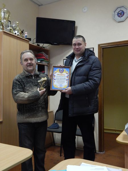 Руководитель новодакрковичской команды "Атлант-Брянконфи" Сергей Герасименко сегодня посетил офис БОФФ, где получил приз лучшего бомбардира зоны "Центр" 3-го дивизиона Первенства Брянской области по футболу сезона 2014 года, который завоевал его подопечный Дмитрий Панихидкин. 21 точное попадание на его счету. БОФФ поздравляет Дмитрия с этим достижением и желает не останавливаться на достигнутом.