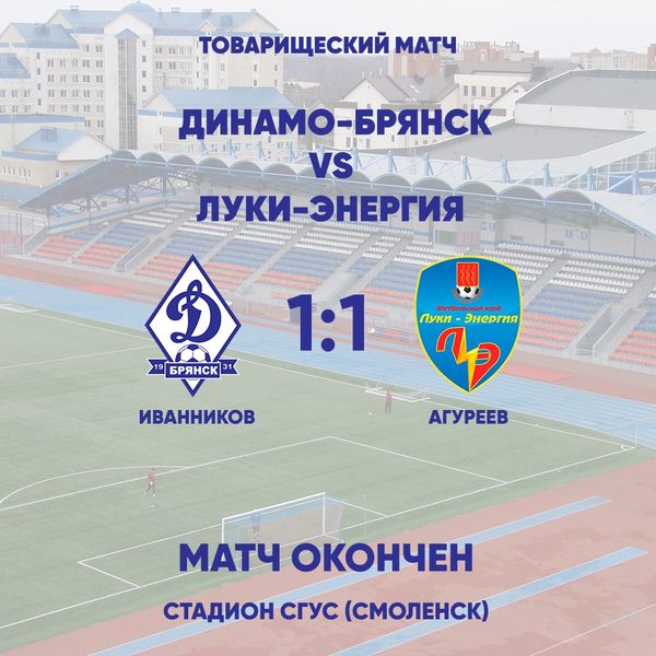 Завершился второй спарринг ФК «Динамо-Брянск» в рамках подготовки к продолжению Олимп-Первенства ФНЛ-2. Сине-белые на нейтральном поле в Смоленске встречались с ФК «Луки-Энергия» из Великих Лук. Игра завершилась вничью 1:1. На гол экс-динамовца Даниила Агуреева точным ударом ответил Николай Иванников.
